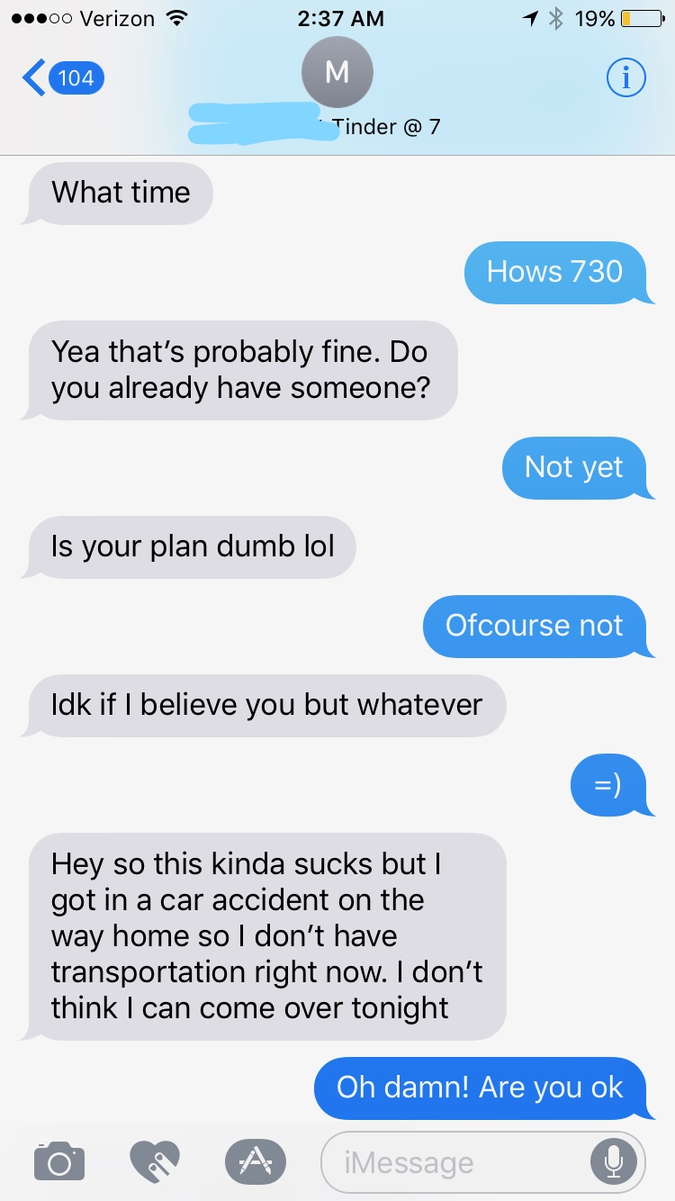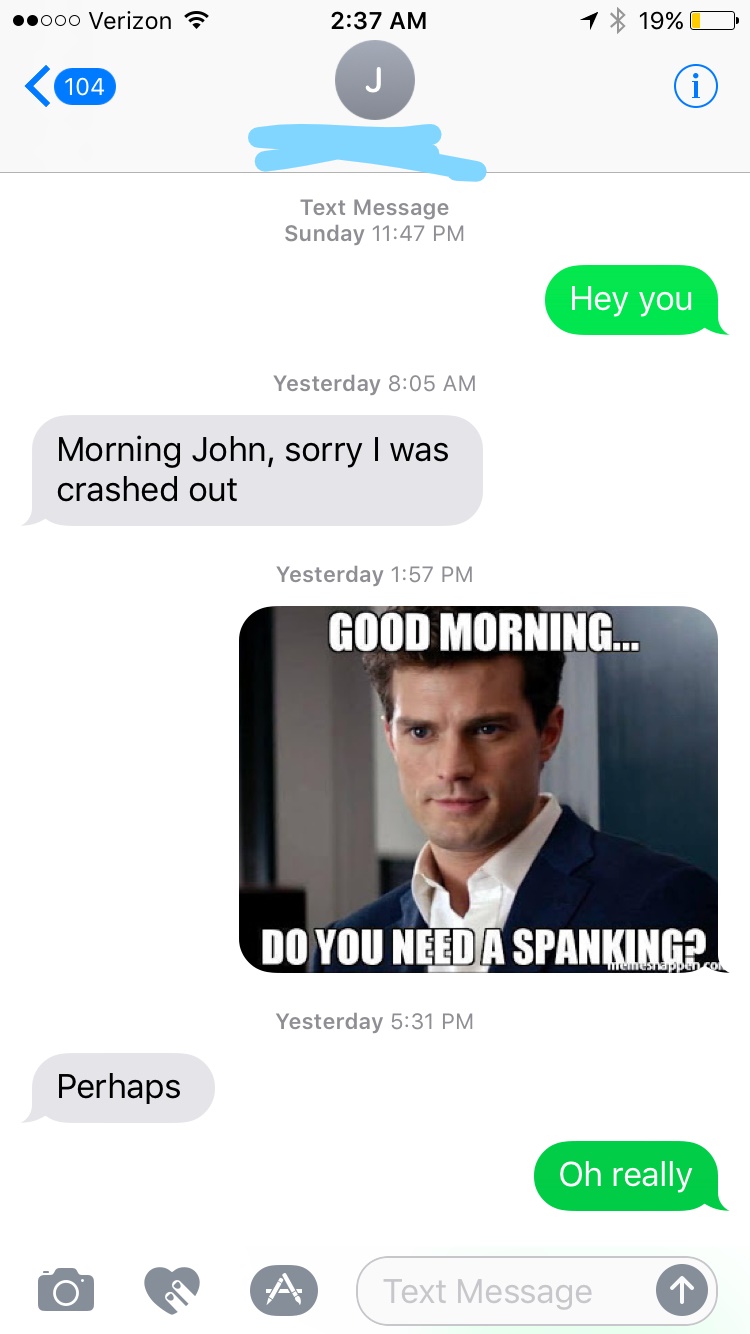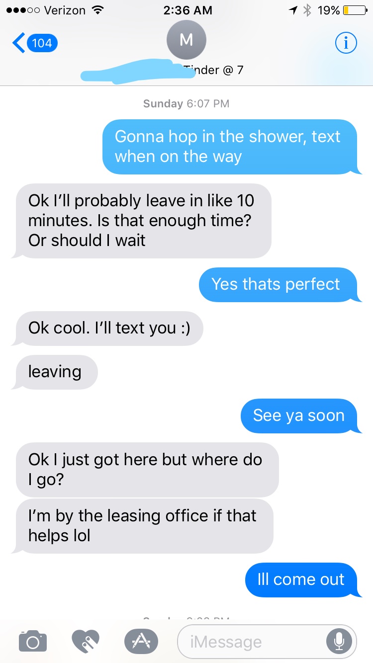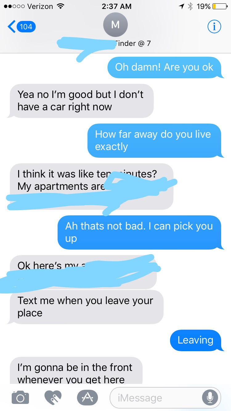 Sent her a text referencing our night the next day. She actually brings up the threesome herself (great sign). Next text, wasn’t some elaborate game tactic, I was genuinely asking because I just moved to Texas and needed car insurance