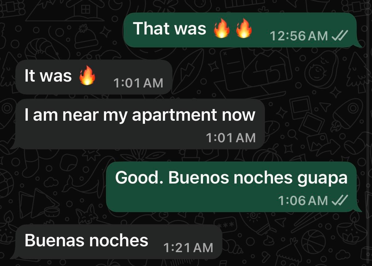 Spend 20–30 minutes after. Talk. Chill. Let things come down naturally. You want her leaving thinking: